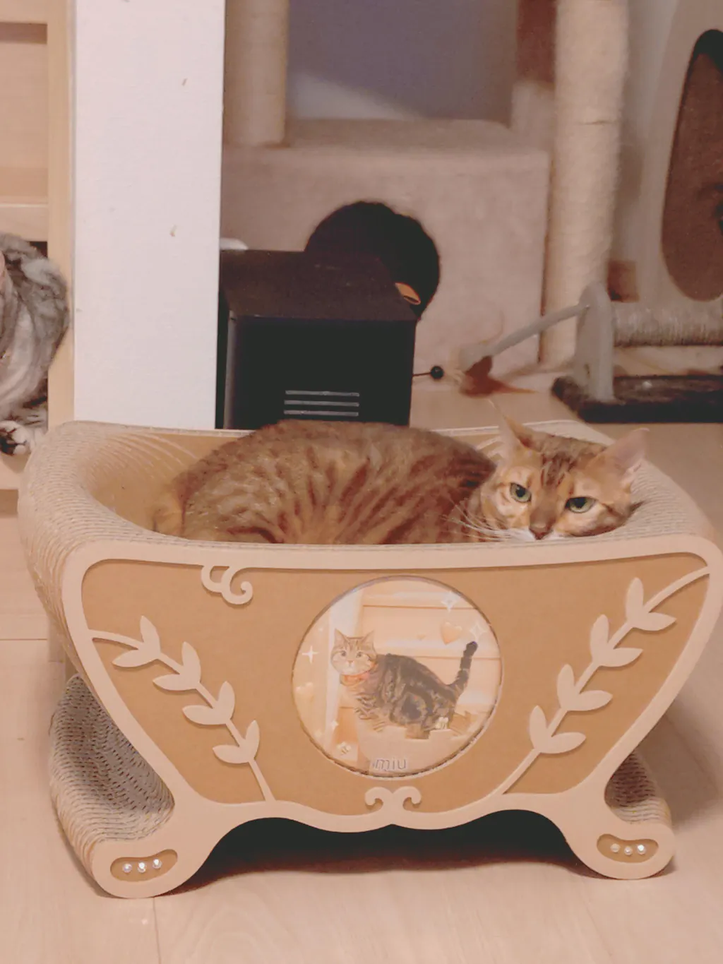 今までにない?愛猫さんの写真を入れてお作りする、特別感のある爪とぎベッドです。