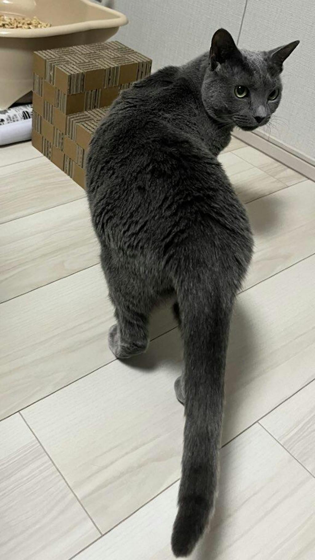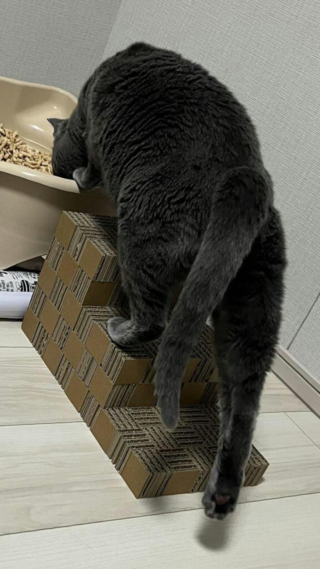 Optionソファの梱包箱が、にゃんこが遊べる箱に変身♪