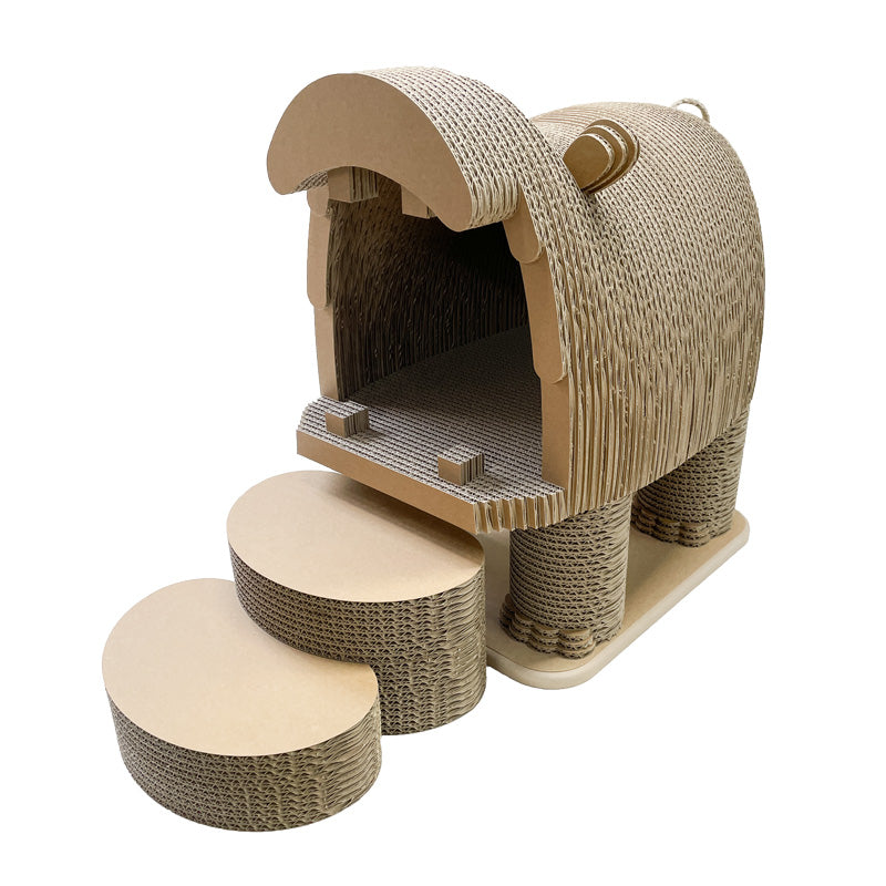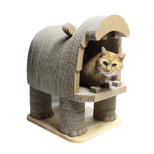 狭くて暗い場所が好きという習性のある 猫ちゃんが大好きな「猫ちぐら」。 カリカリーナ流の「遊びゴコロ」をプラスすると、可愛い動物型の爪とぎが誕生しました。国産の「超」強化ダンボールを使い、丁寧に成形した温かみのあるフォルムです。
