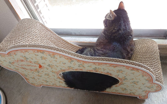 材料の超強化段ボールは、通常の段ボールの約10倍の強さ(当社比)。だからカスが出にくく、お掃除も簡単。長くお使いいただけるから、安価な爪とぎを頻繁に購入するよりも経済的です。