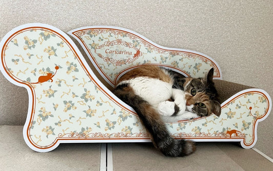 おしゃれな猫の爪とぎソファー、カリカリーナには猫が喜ぶ工夫が満載です。「にゃん工学」を駆使して設計されたフォルムは、猫もはまるフィット感。国産の材料を用いて、国内で製造しているので大切な家族の一員に安心してお使いいただけます。