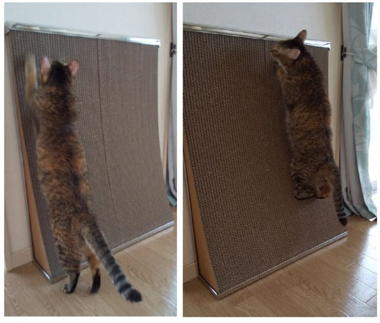 ついつい壁で「のび~」をするのが、そして爪をといでしまうことが大好きな猫ちゃんにオススメの逸品です。外の枠はステンレス製ですので、安心して清潔にお使いいただけます。