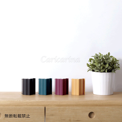 グルーモは立てて置くことができます。粘着テープの側を見せないでおけるので、インテリアとしても置いておくことができます。