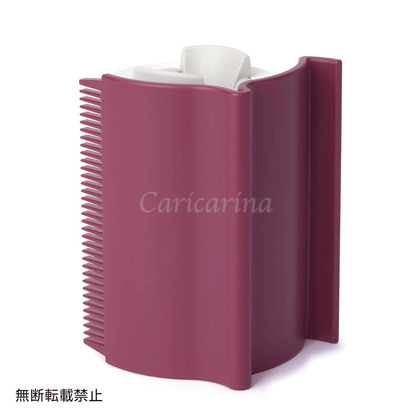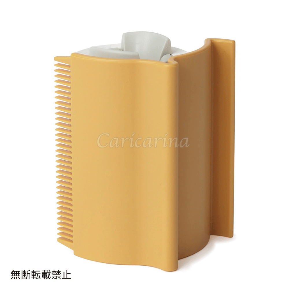 片手でつかめるサイズの粘着テープに、1cmほどの長さの歯が並んだクシがついています。ペットを撫でる要領でコロコロと転がせば、クシですかれた抜け毛が粘着シートに張り付く仕組みです。