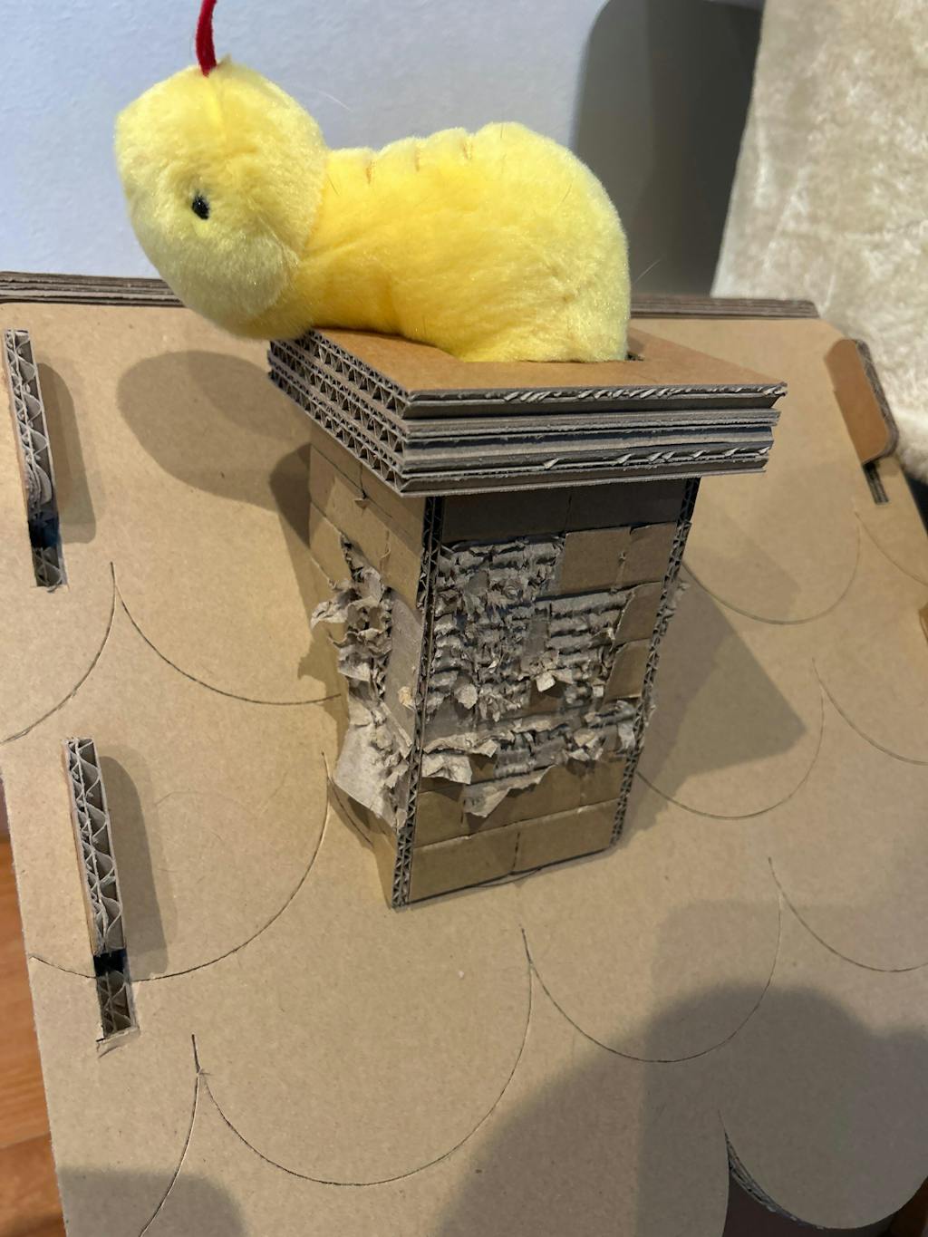 ただ、外側の煙突の周りを爪で研いでいたら、段ボールが取れてしまい、結構口でも剥がし始めてはげたような状態になっています。そこだけが残念でした。