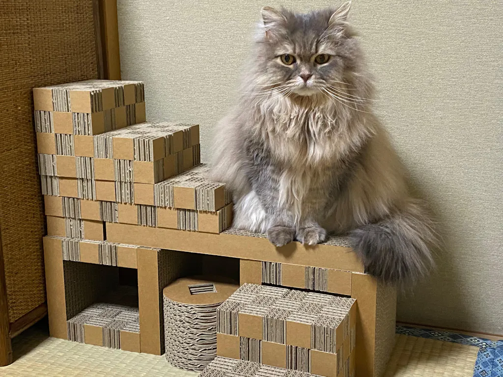 結構な時間をかけて色々なものを探しましたが、爪研ぎ段ボールで階段にできてゲージを狭くもしなくて・・・ってなるとカリカリーナしかないと思います。私調べですが(笑)